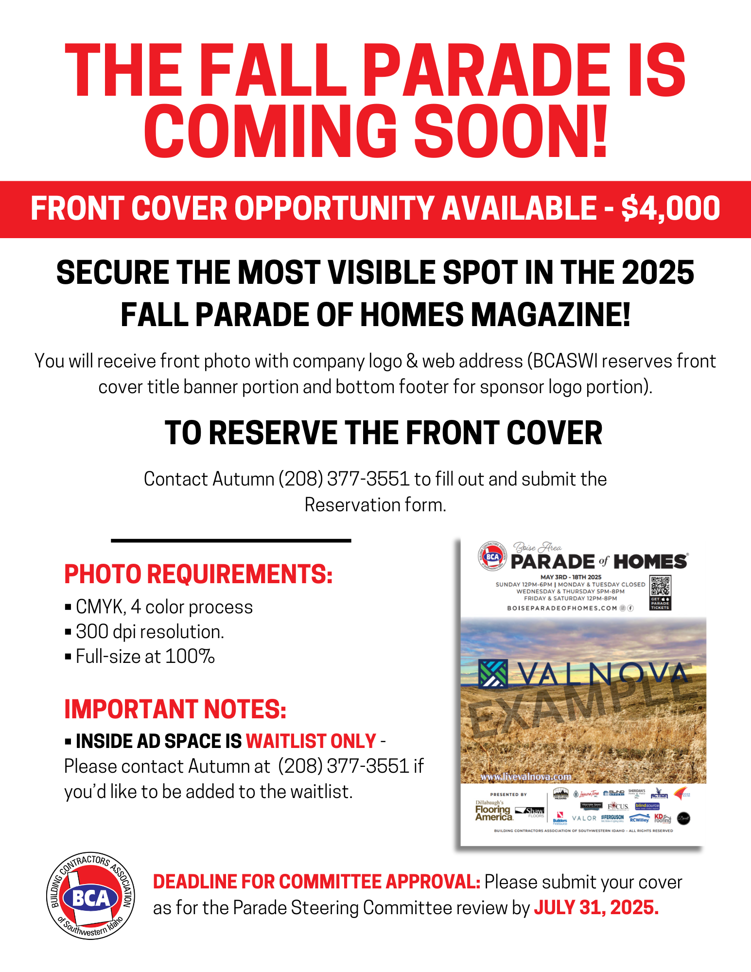 FALL PARADE DEADLINE