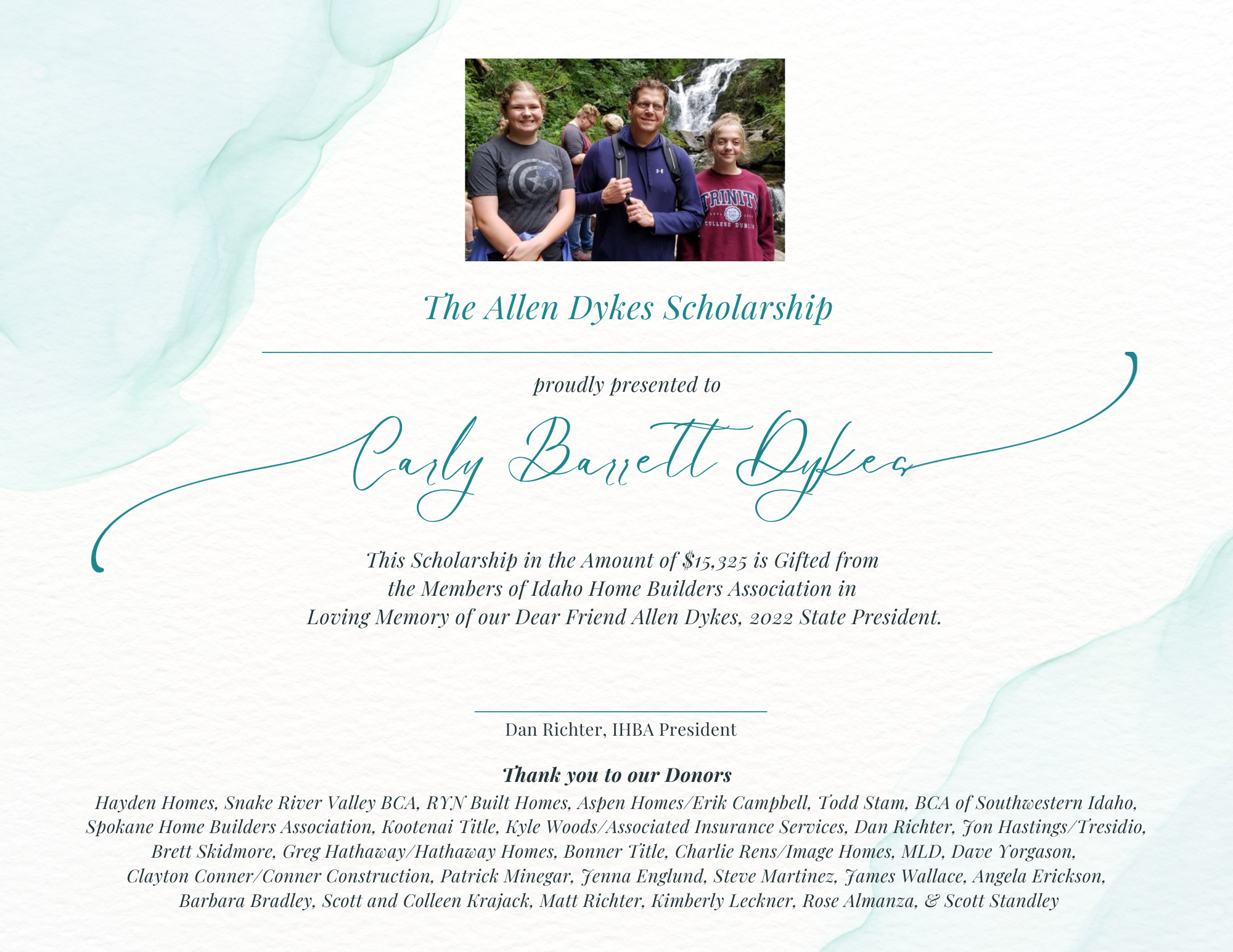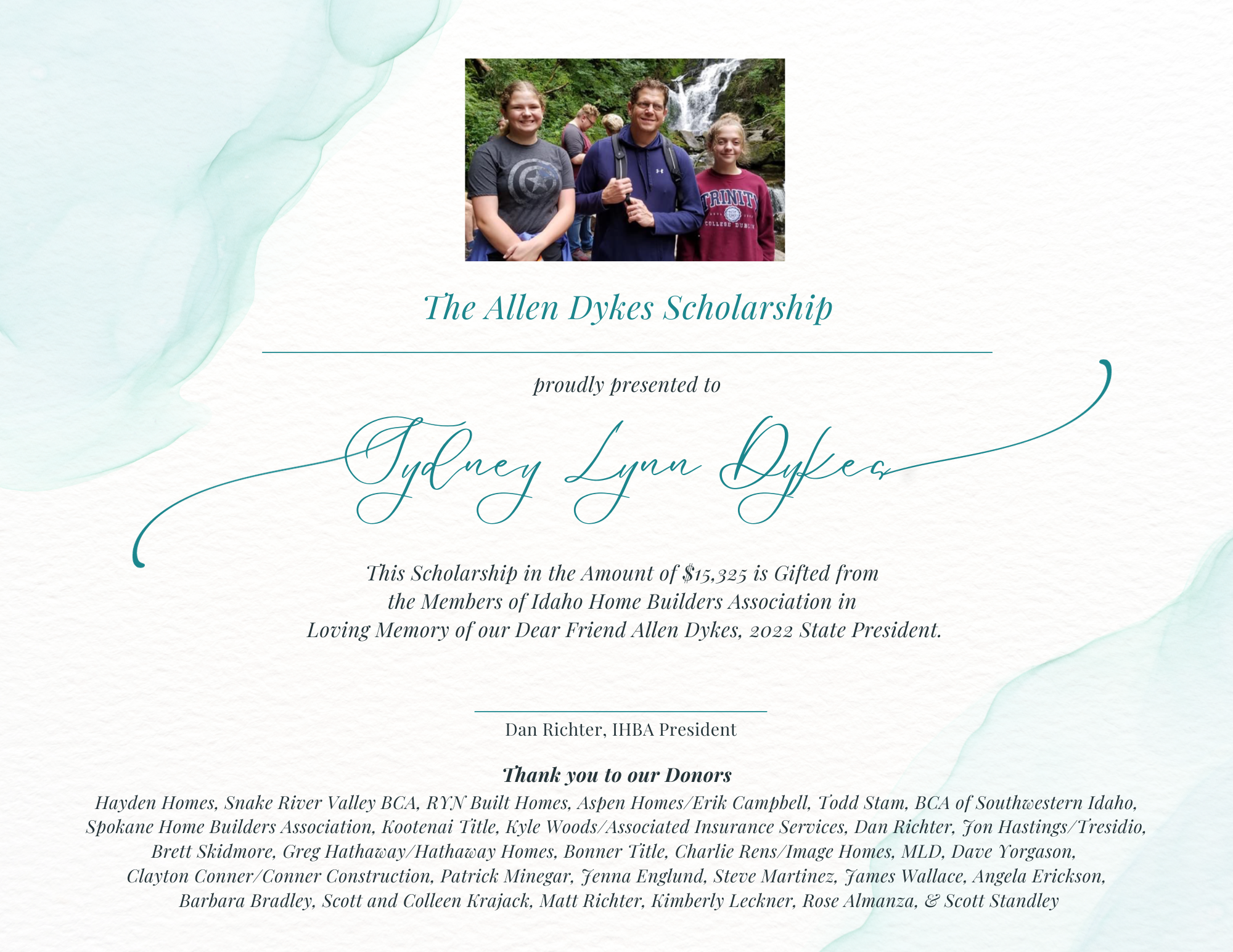 THANK YOU - Allen Dykes Daughter Scholarship $30,650.00 Raised