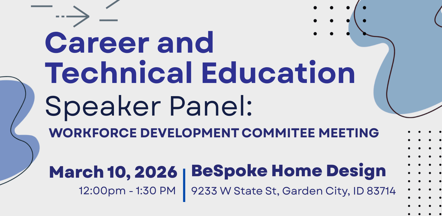 The Workforce Development Committee is excited to host a dynamic speaker panel featuring leaders from Career & Technical Education (CTE) programs across the Treasure Valley and surrounding areas. This event will offer valuable insights into current training opportunities, industry-aligned programs, and the evolving needs of our region’s workforce.