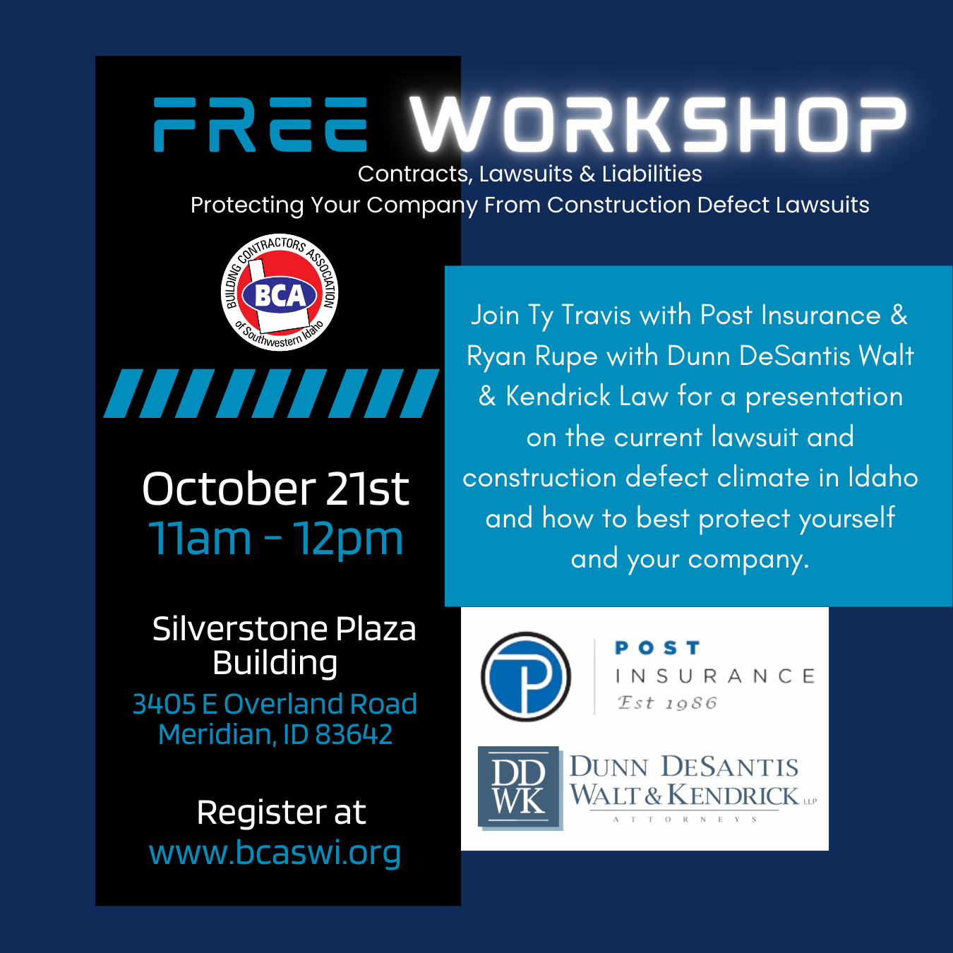 FREE Insurance for Builders Class - Contracts, Lawsuits & Liabilities- Protecting Your Company From Construction Defect Lawsuits