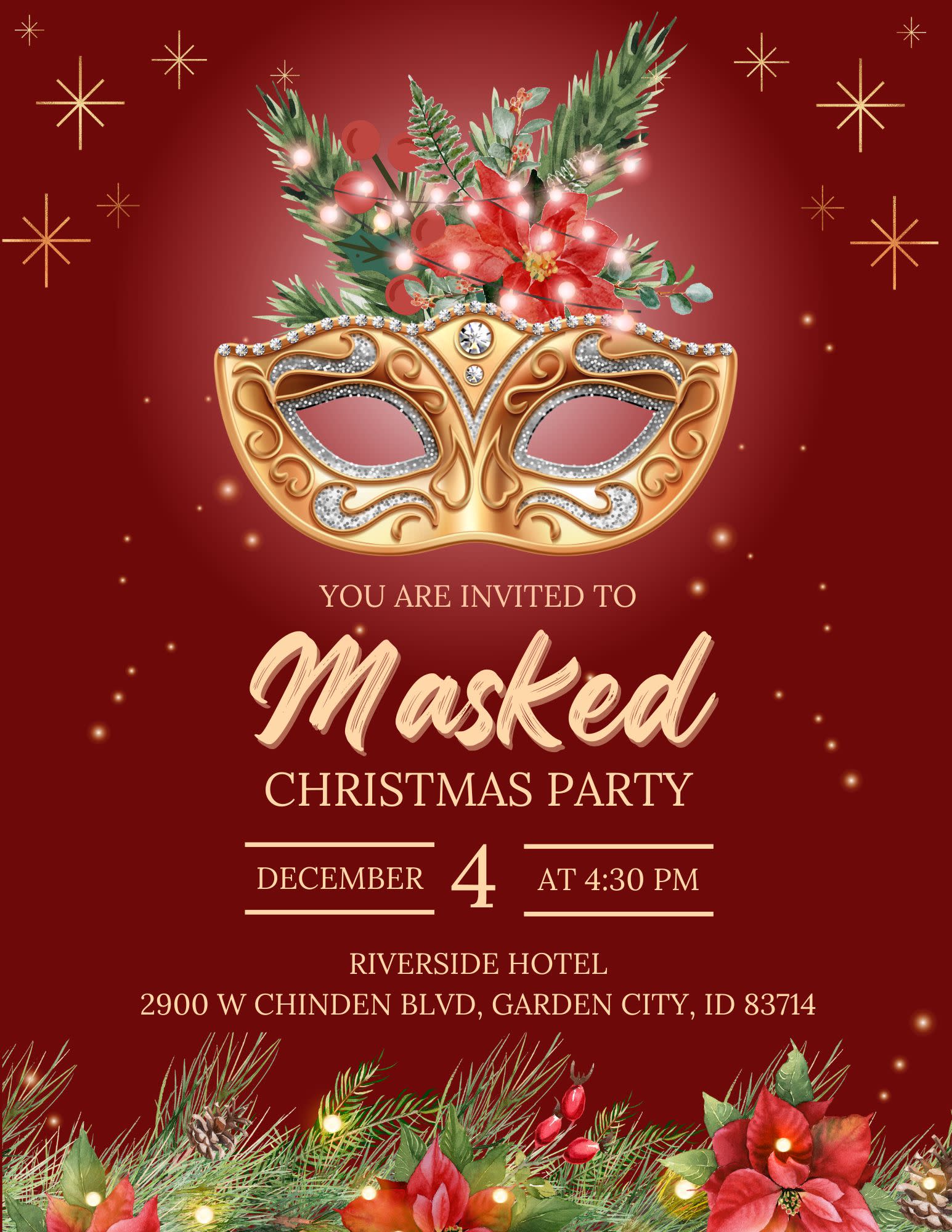 Step into a world of enchantment and holiday magic at our Masked Christmas Ball, where elegance meets festive cheer. Don your most dazzling masquerade mask and join us for an unforgettable evening filled with music, laughter, and celebration.